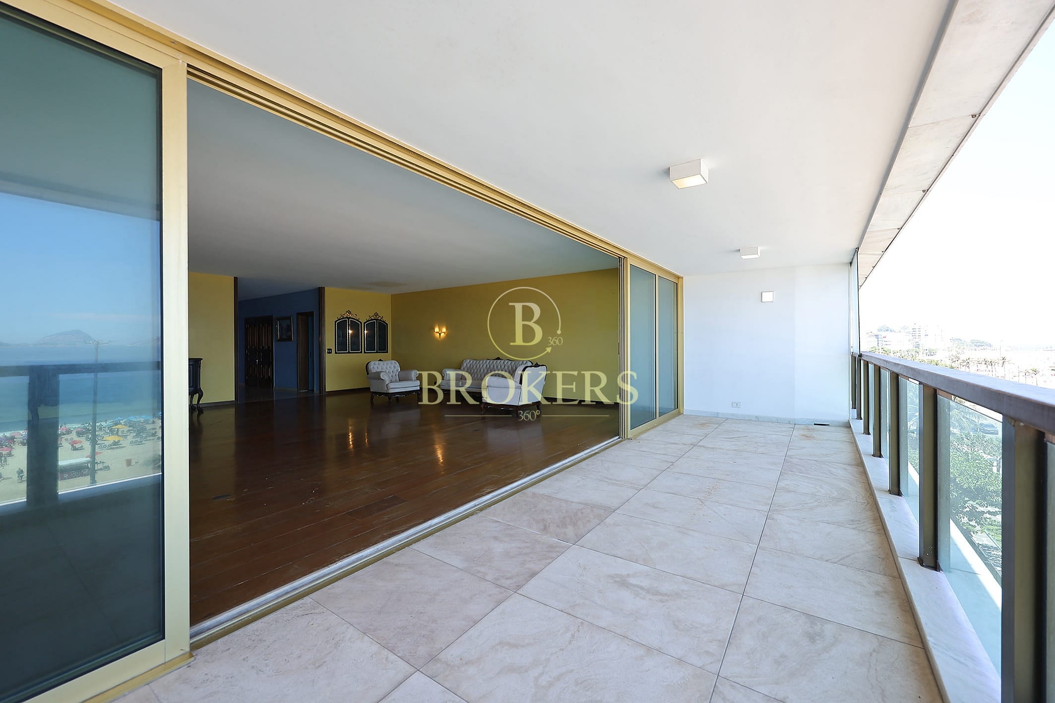 Varandão com vista livre e panorâmica para o mar