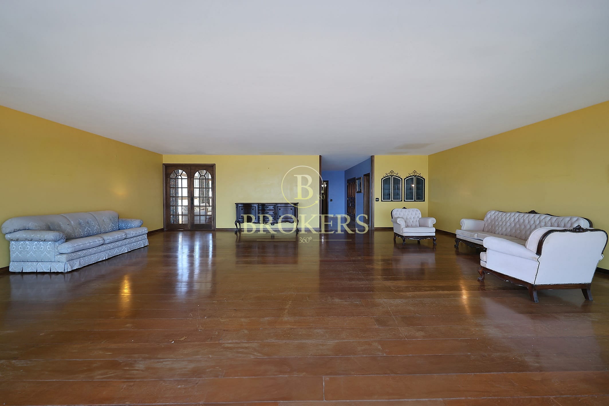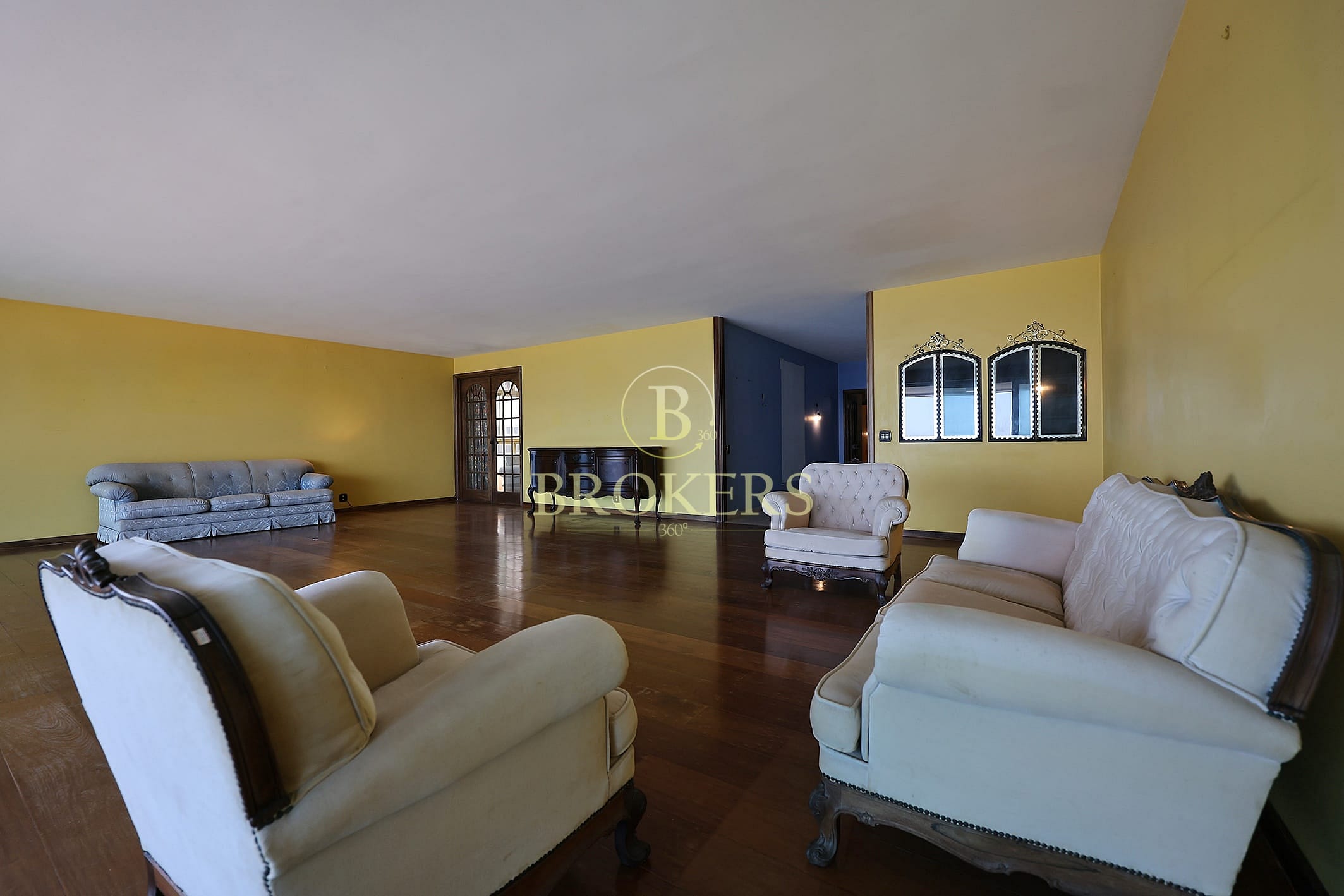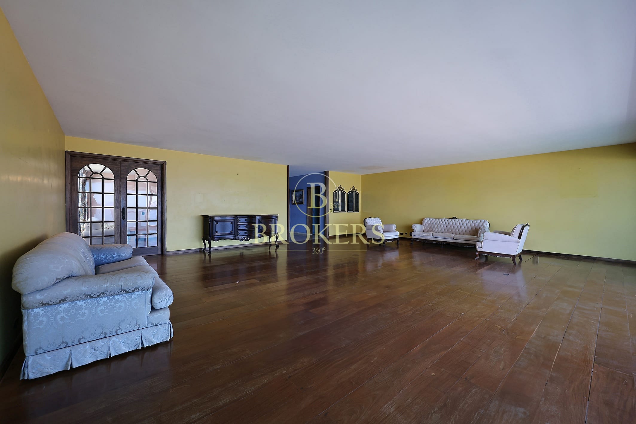 Salão amplo com 3 ambientes distintos (estar, jantar e TV)