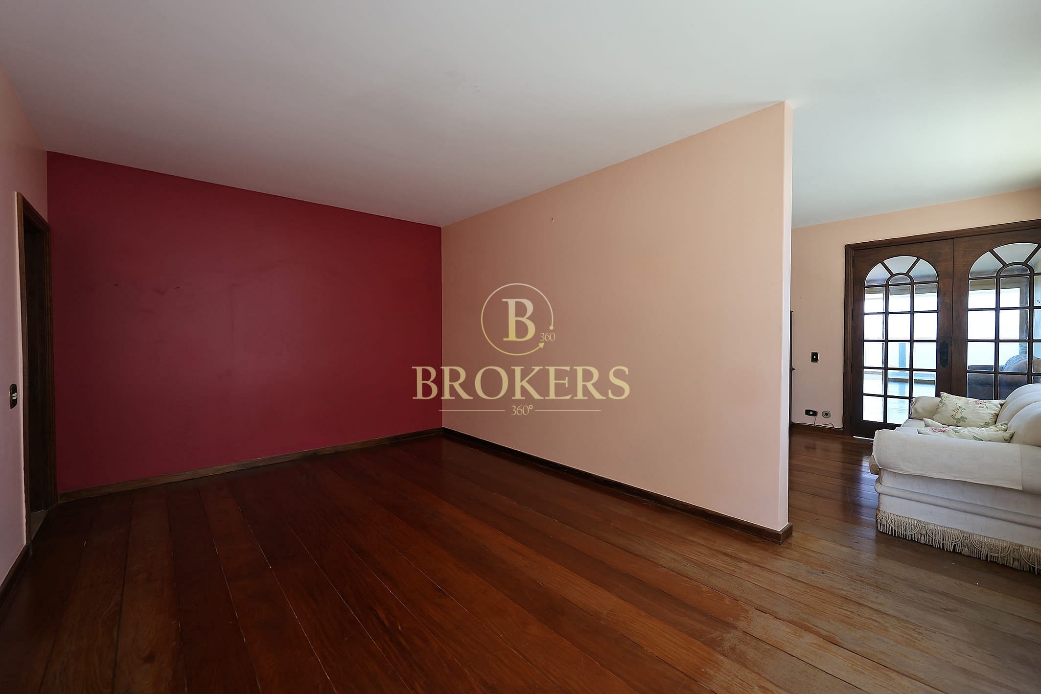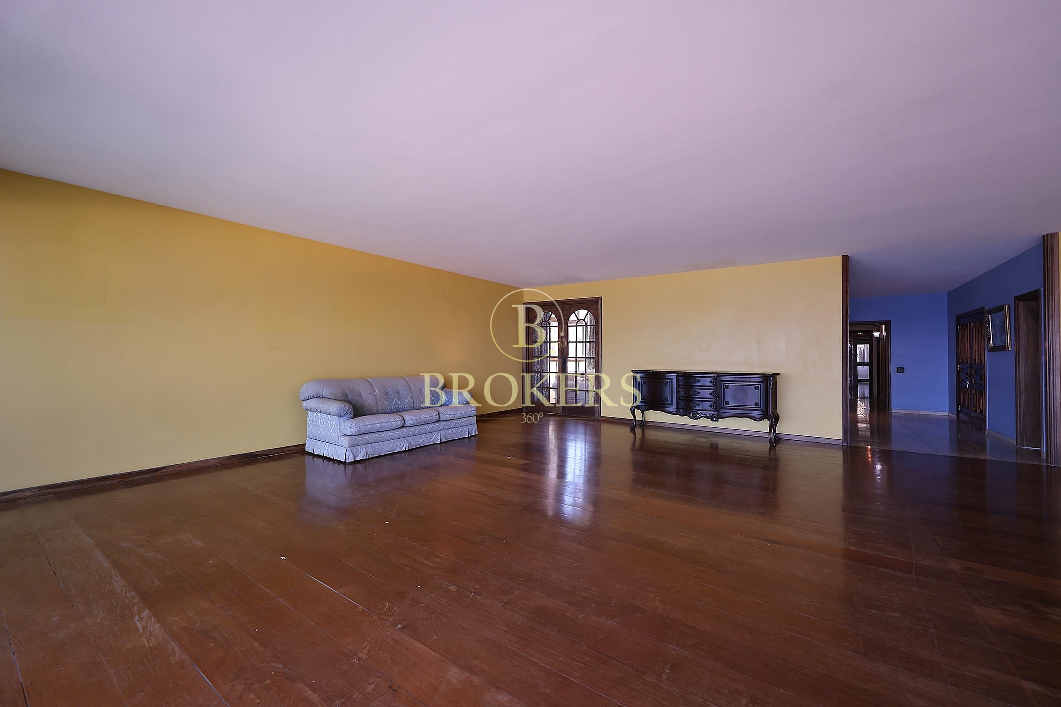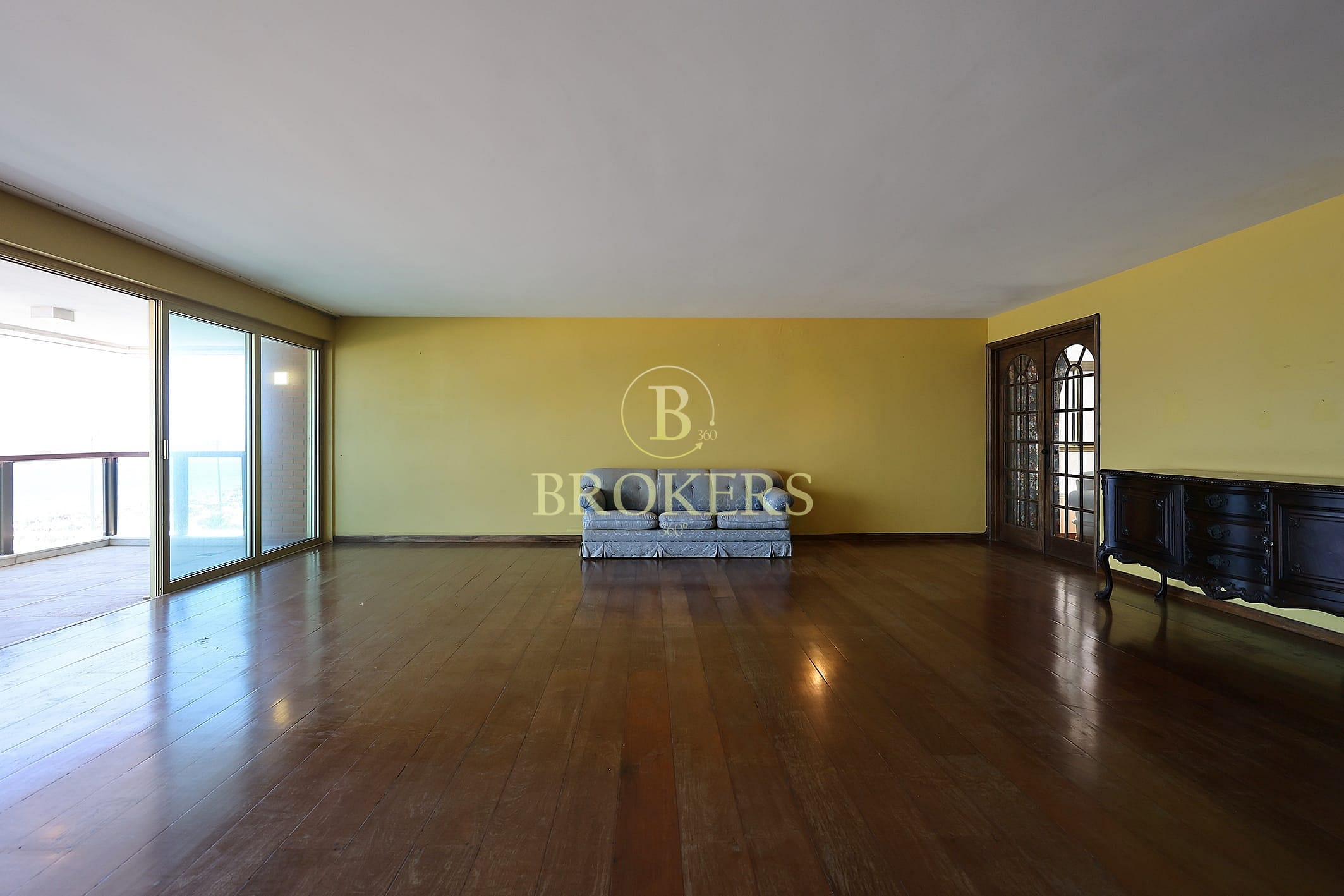 Salão amplo com 3 ambientes distintos (estar, jantar e TV)