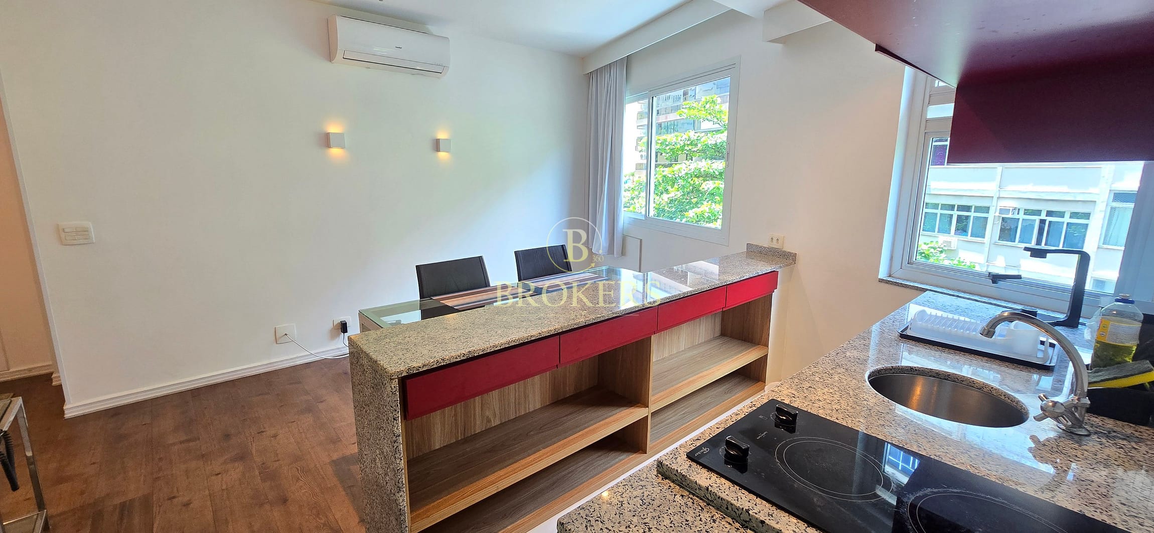 O apartamento possui planta moderna e funcional. Sala/quarto, com cozinha americana integrada à sala, favorecendo amplitude, iluminação natural e maior atratividade para o mercado de short stay. Conta com ar-condicionado, ótimo padrão de acabamento e 1 vaga de garagem na escritura, diferencial relevante e altamente valorizado na região.