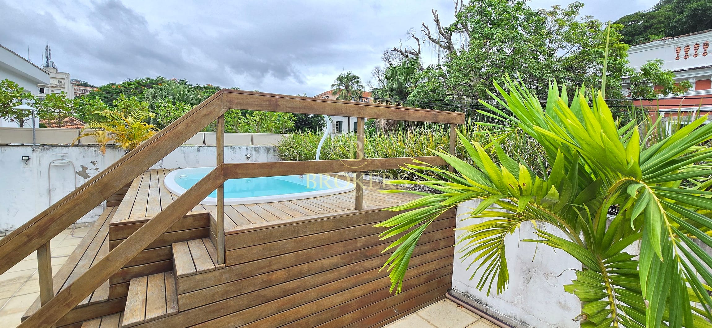 O Grande Destaque: Acesso direto a um terraço espetacular com deck e piscina. Um refúgio particular com vista livre para relaxar enquanto aprecia o pôr do sol de Santa Teresa.